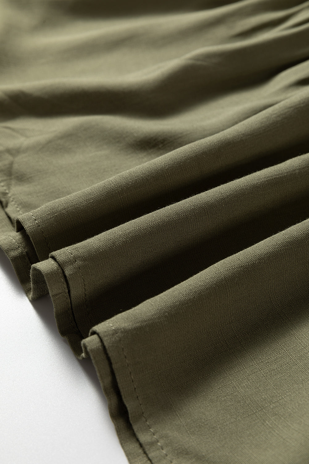 A flattering silhouette, the long dress features a collared v-neck and smocked detail. Comfortable and visually appealing, the dress is certainly chic and comfy.