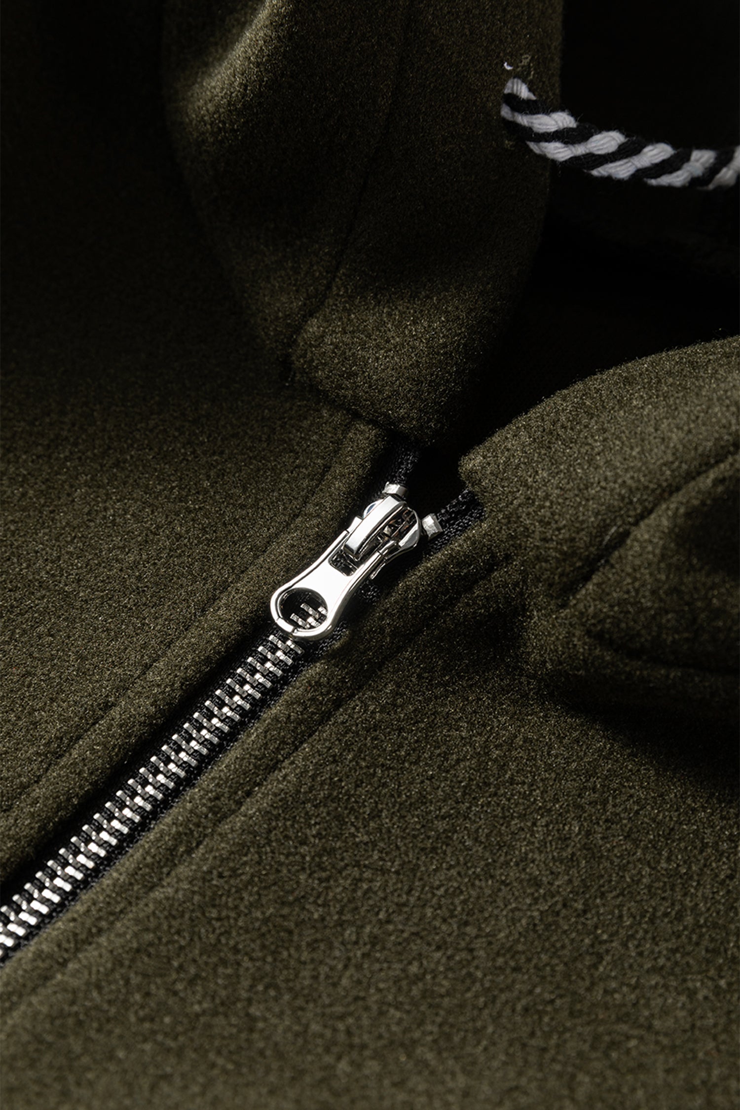 The zip-up hoodie has adjustable strings and offers easy layering. The tunic length gives extended coverage for versatile outfit options. The drop shoulder design ensures a relaxed fit, and the contrast cuffed sleeves create chic detail.