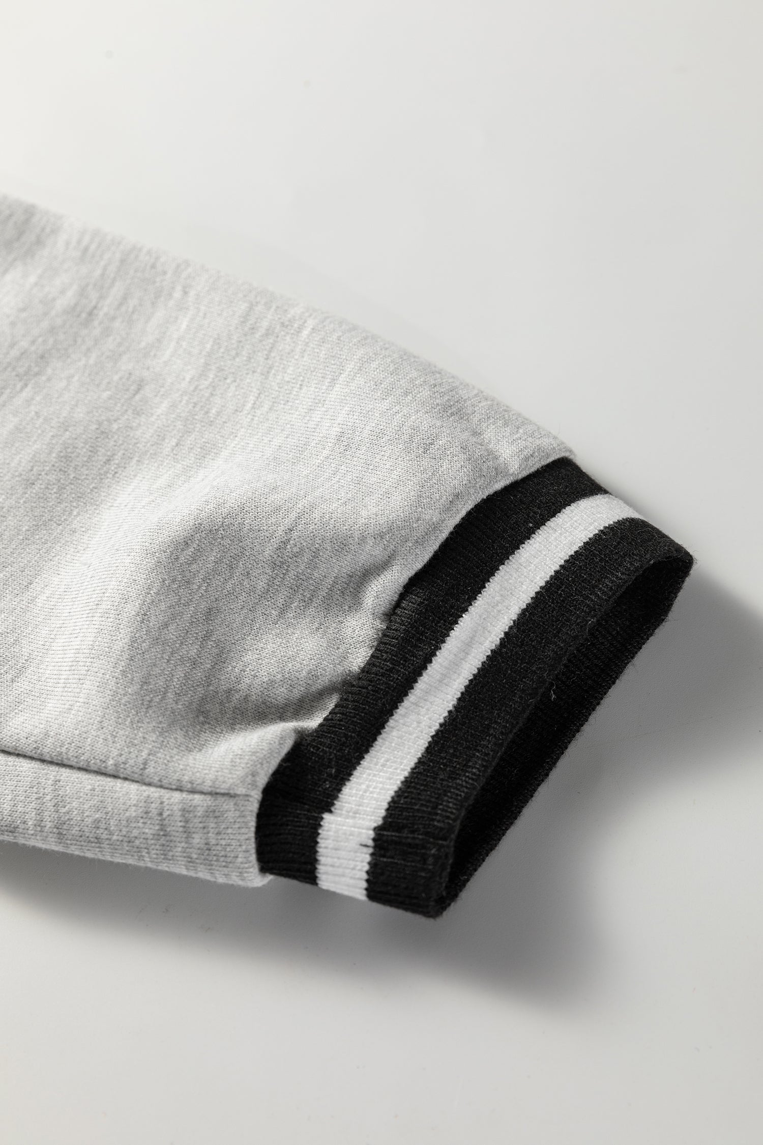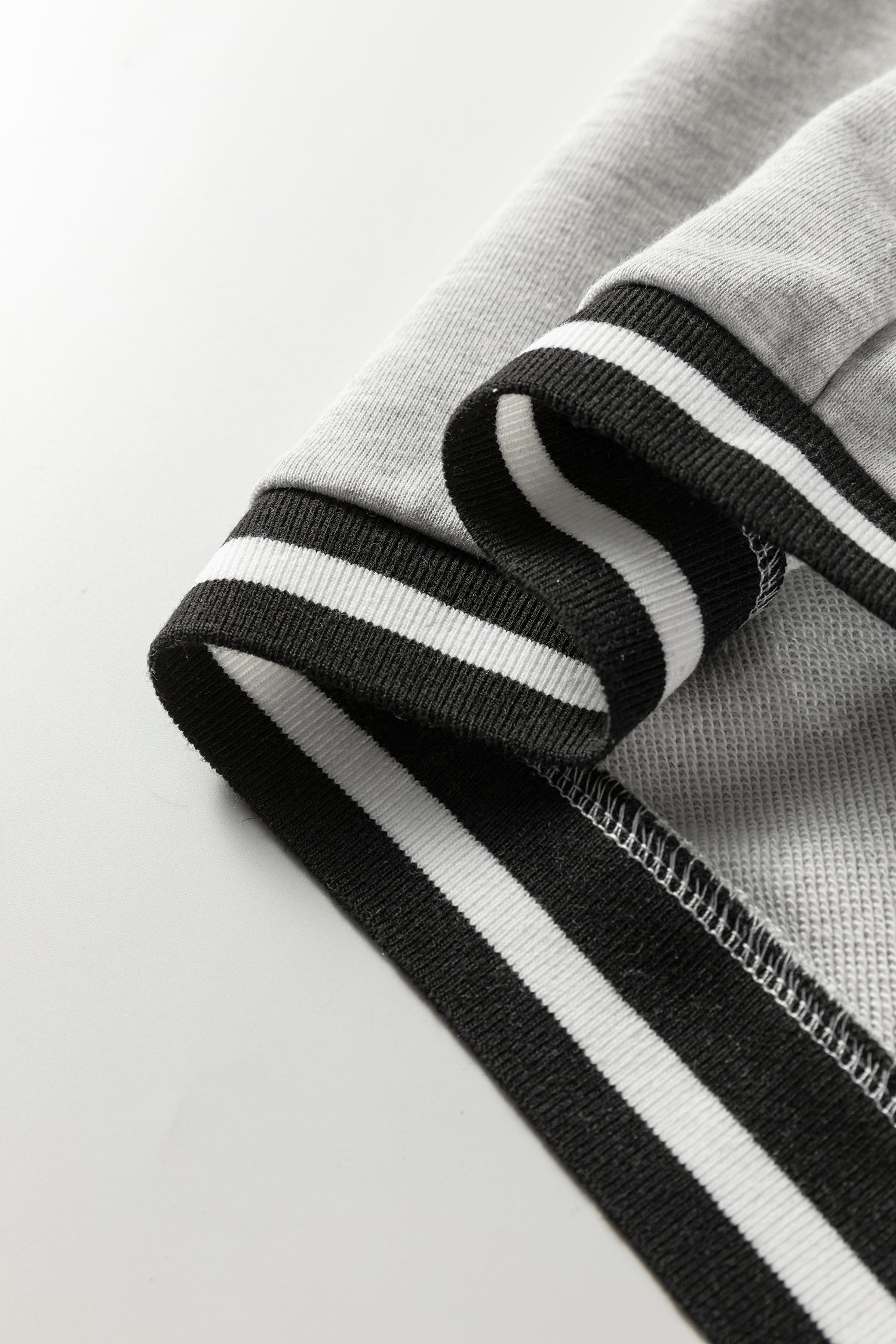 Light Grey Striped Trim V Neck Long Sleeve Preppy T Shirt Dress